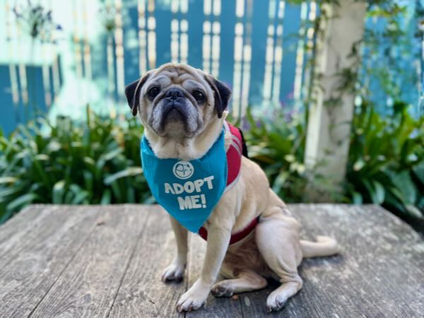 This adorable, resilient guy joined us after his senior guardian could no longer care for him. He had some skin issues that needed care, but he's on track to have the most beautiful Pug fur soon!