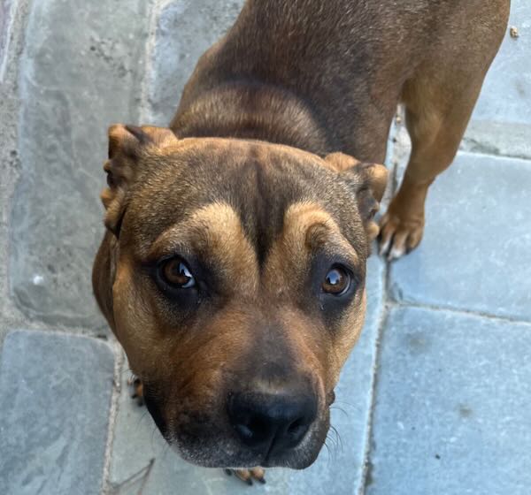 Emmy is a 6 year old, 60lb German Shepherd/Staffordshire Terrier mix with a gentle soul and a heart full of loyalty. She is house trained, crate trained, walks well on leash, and knows her basic commands. Emmy does great with other dogs and has attended doggy daycare weekly since she was a puppy. She enjoys daily walks, hikes, and off leash adventures, but settles nicely at home once her exercise needs are met. In public, she tends to ignore strangers and stay close to her person, showing her sweet but sensitive nature.