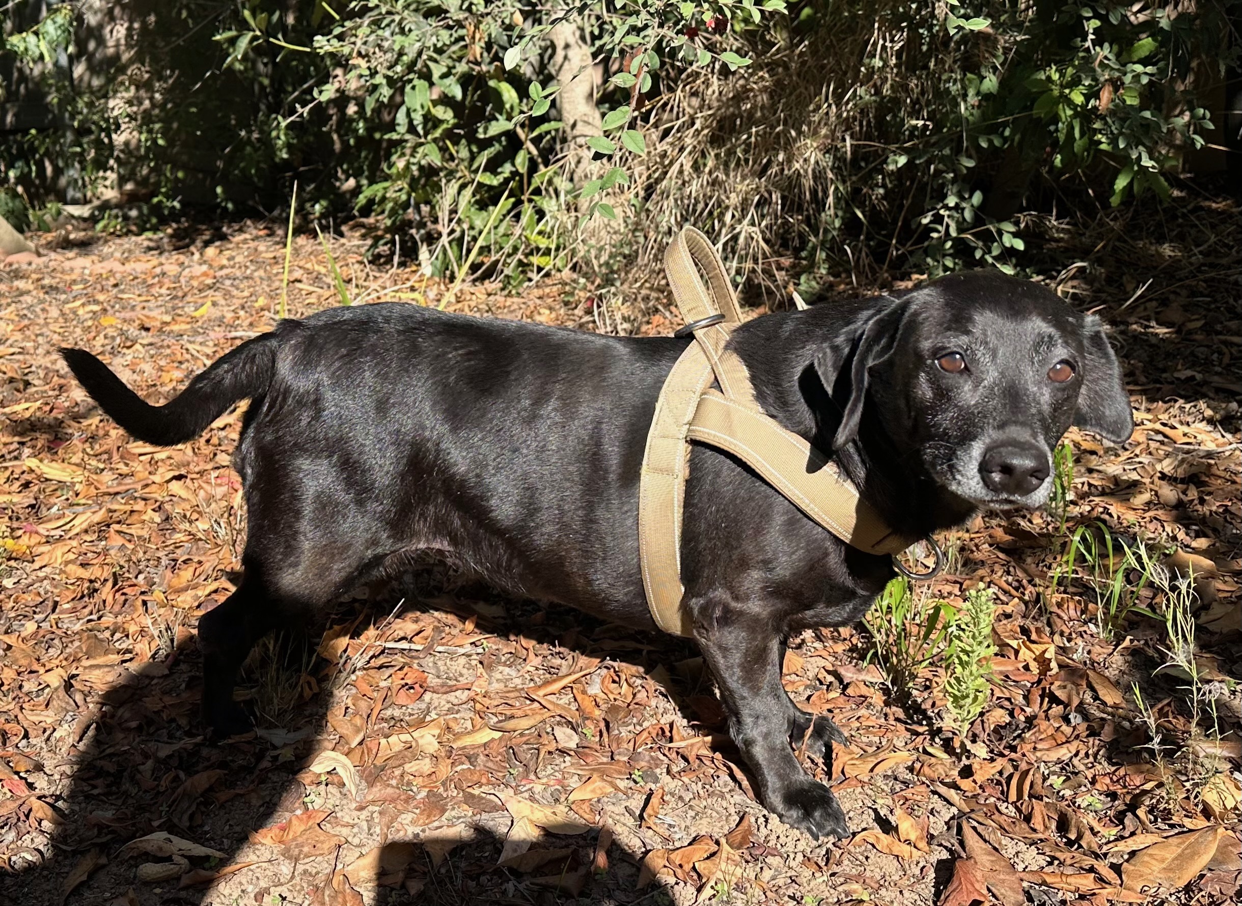 She's a mature lady and prefers to hang out with other senior pups, the young whippersnappers are a bit too much for her. She can be a little unsure around cats, so a feline-free home (or one with respectful cats) would be best. Walks are one of her favorite pastimes, though she likes to take her time and stop for a breather here and there. She's carrying a few extra pounds and would benefit from a gentle, consistent routine to help her feel her best.