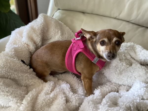 Darling Rita has been showing a little bit of cognitive decline in her aging years. While she has shared a home with another dog much of her life, she seems to wish to be a solo dog or with just one more mellow dog in her next home. Does this sound like your home? We'd love for Rita to cozy up in a loving retirement spot.