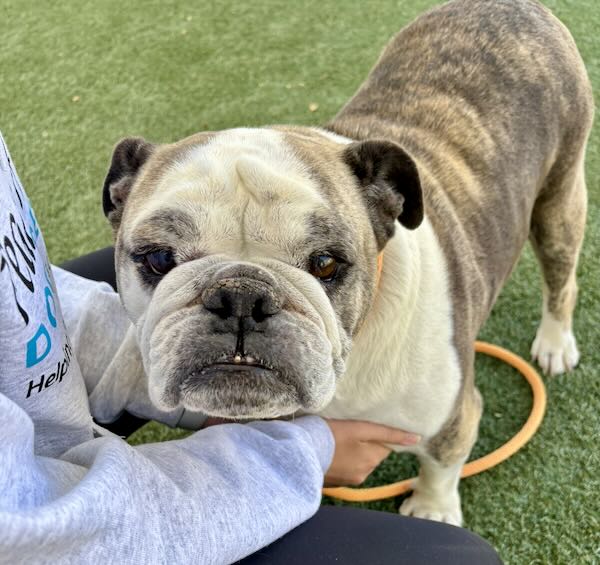 Miss Mabel is searching for a foster home to call her own. English Bulldogs can be tricky to place in homes so we're looking to line up a foster and a back up foster just in case she is in need of a foster move, in order for Mabel to join the POMDR pack.